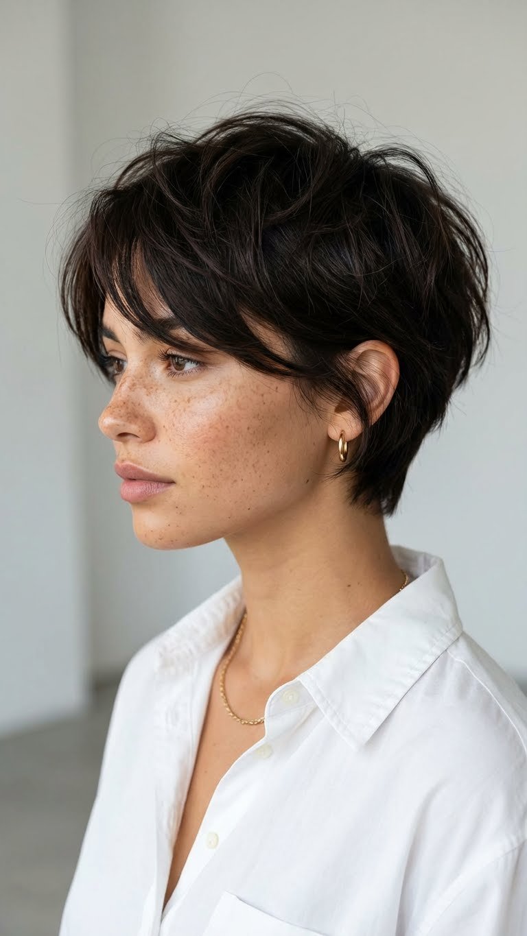 Often called the “Lived-in Pixie,” this cut embraces the stage between a short crop and a bob. It features longer pieces around the ears and nape, giving it a softer, more feminine feel than a traditional pixie. The maintenance is incredibly low because the style is intended to look slightly overgrown. It requires fewer salon visits than a sharp crop. You can let it do its thing with minimal product. It works wonders for bringing out curls that might be too tight in shorter styles.