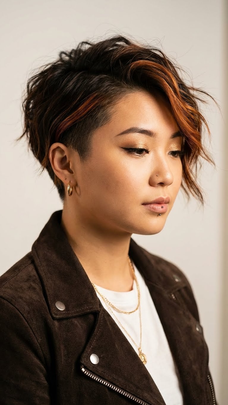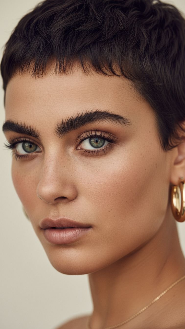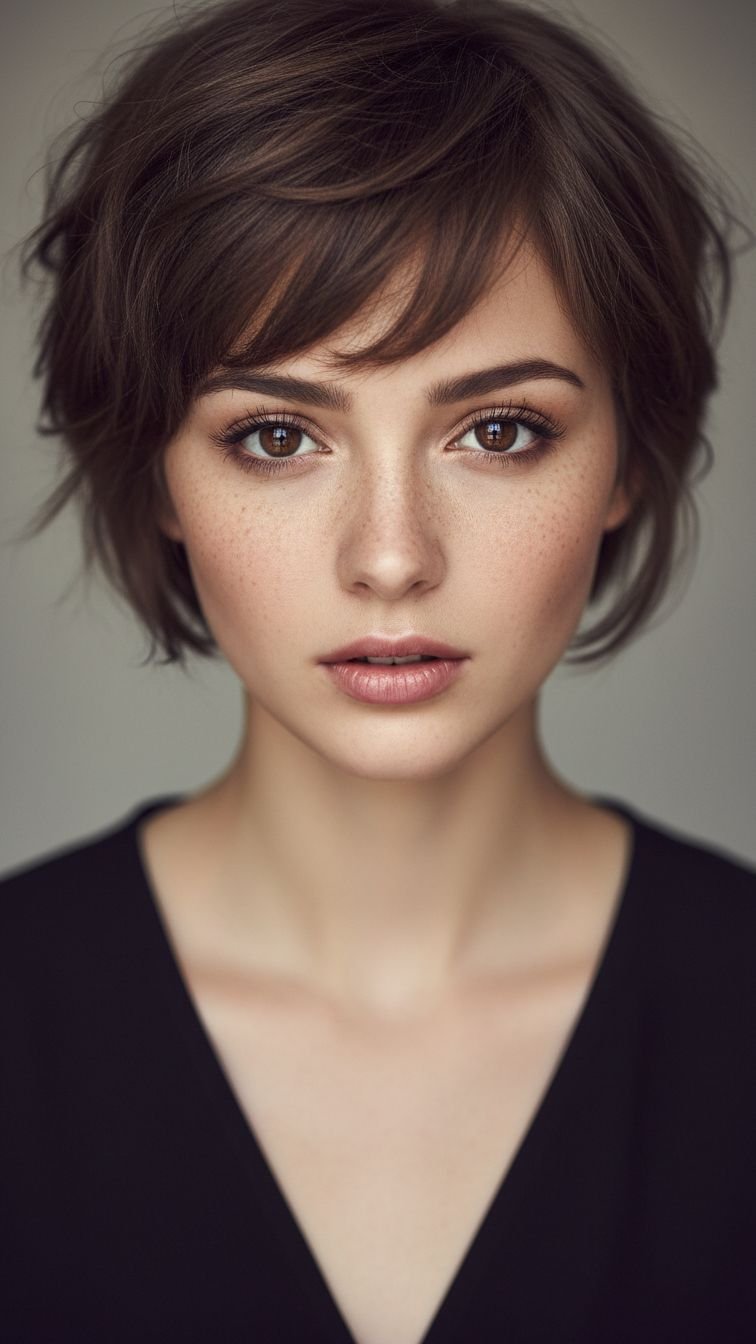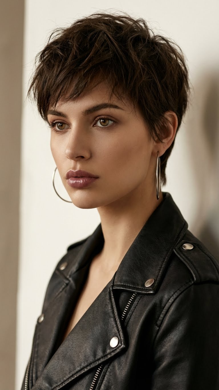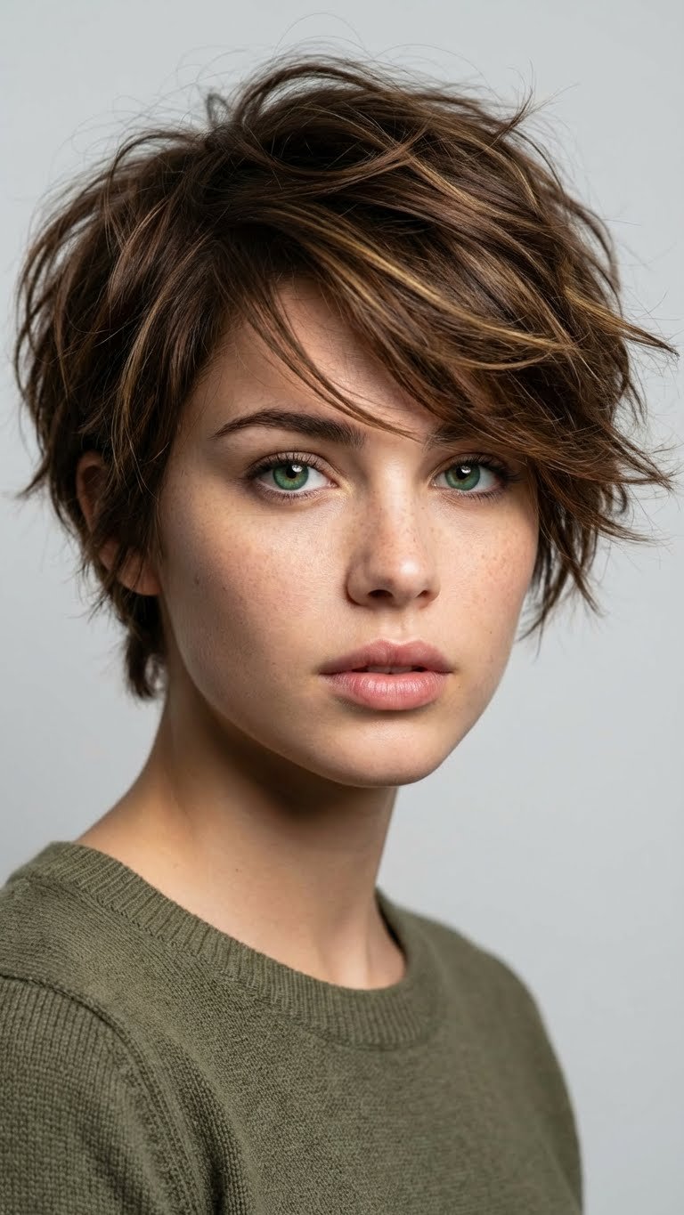 A short pixie with lots of chopped layers on top. This creates height and texture. It is the ultimate “wash and go” for brave souls. It requires confidence but pays back in time saved. You can style it messy, spike it up, or smooth it down.