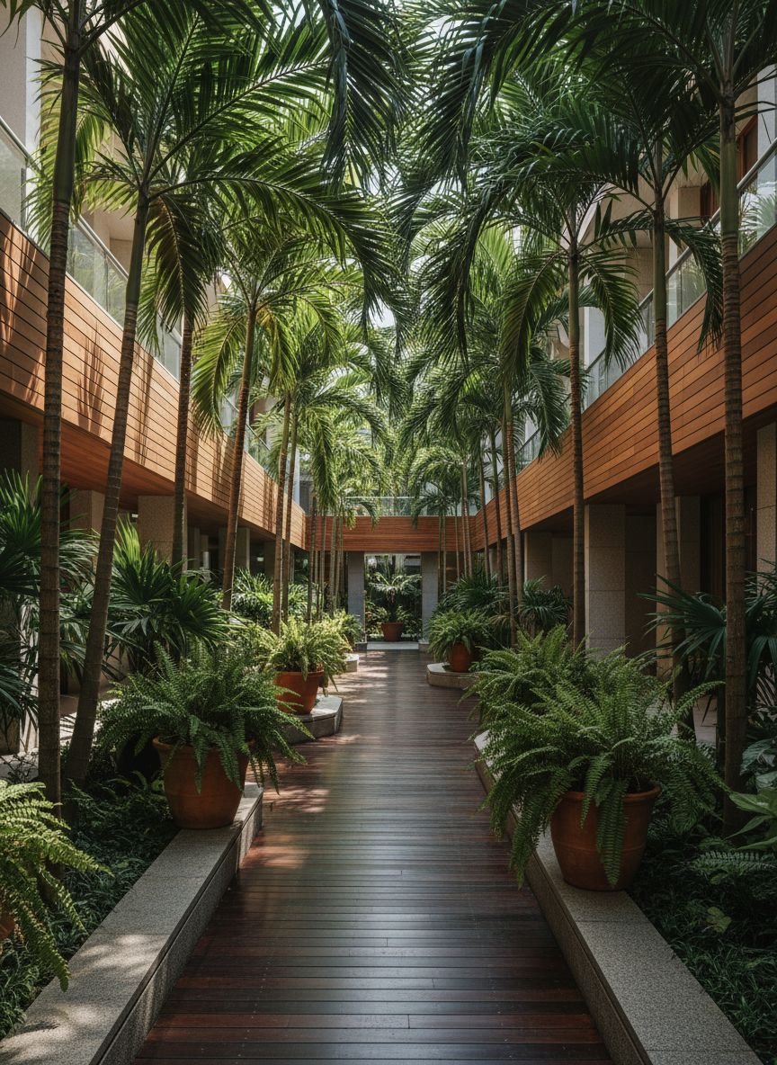 - Think Vertically: Floor space is finite, but wall space is often underutilized. Use trellises, hanging planters, and living walls to draw the eye upward.