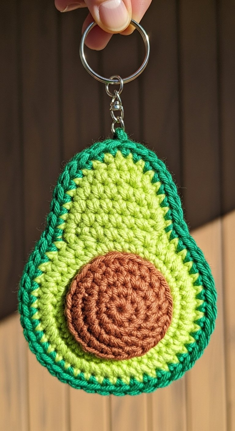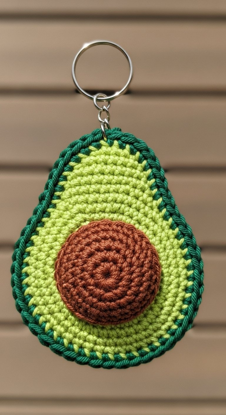The texture is usually smooth and matte, best achieved with cotton yarn to give it that modern, clean look. It is often shaped like a flattened pear, which fits comfortably in the palm of your hand. When you attach the keyring, make sure to sew it firmly into the dark green “skin” layer for durability. It adds a pop of healthy greenery to your accessories, much like how you might add greenery to your home. Speaking of greenery, if you love bringing nature into your space, check out our guide on 13 Cozy Earthy Kitchen Designs That Instantly Create a Warm Vibe for more inspiration.