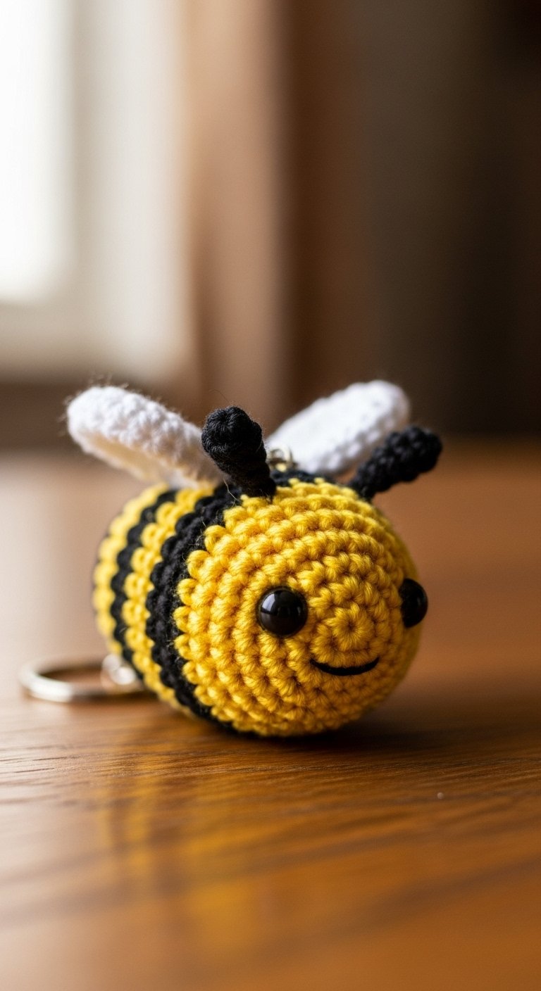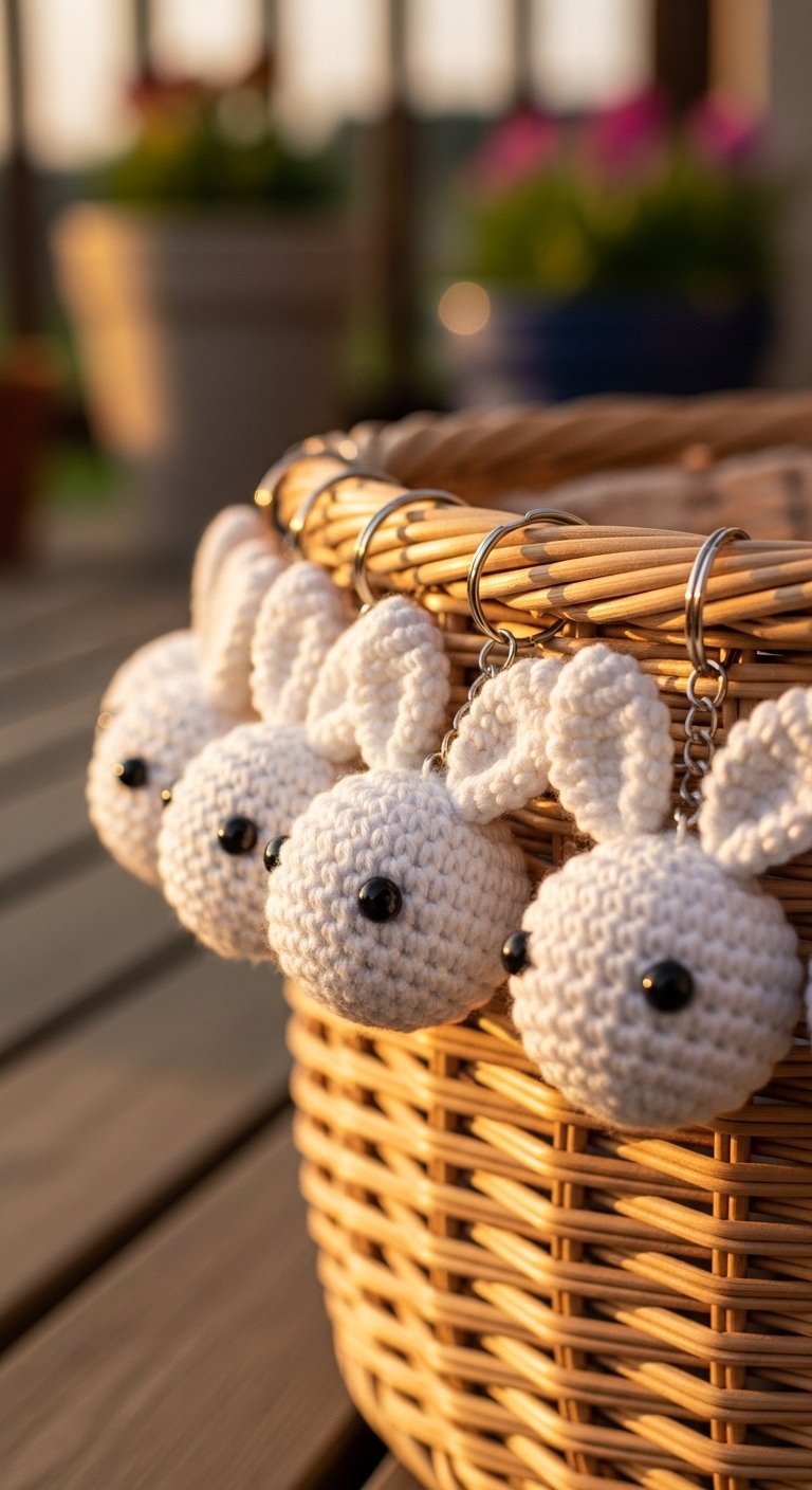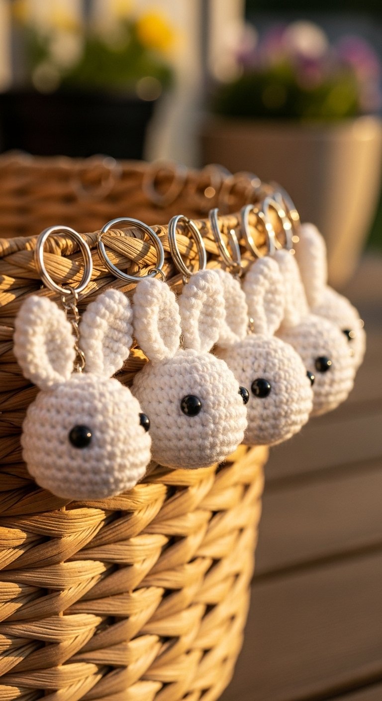 A tiny pom-pom tail on the back adds a tactile element that is fun to touch. Soft, fuzzy yarn like chenille works wonders here, turning the keychain into a sensory stress ball. It is sweet, innocent, and universally loved.