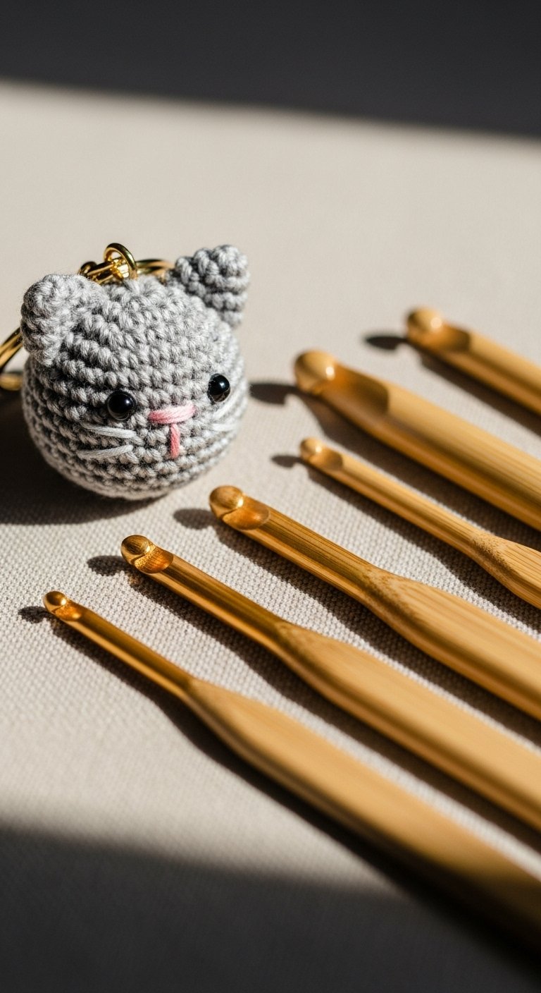 When making amigurumi keychains, your worst enemy is a loose stitch. If your tension is too loose, the stuffing will show through, and the keychain will lose its shape quickly. The golden rule is to use a crochet hook that is at least one or two sizes smaller than what the yarn label recommends. For example, if your worsted weight yarn calls for a 5.0mm hook, grab a 3.5mm or 3.75mm hook instead. This creates a dense, stiff fabric that holds the stuffing in securely and looks much neater.