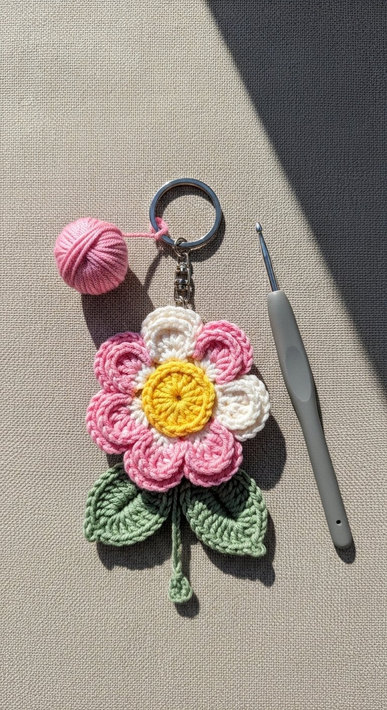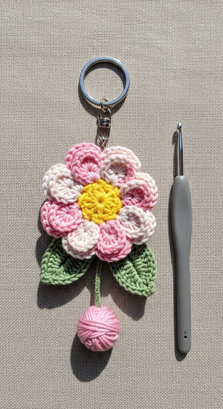 Capture the fleeting beauty of spring with a cherry blossom keychain. unlike the stuffed animals (amigurumi), this is often a flat motif or a slightly 3D puff flower. You will use soft pinks and whites, working in rounds to create five distinct petals.