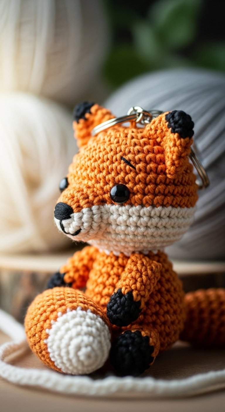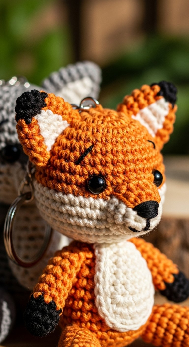 This project relies heavily on precise stitch placement to get the face symmetry right. It feels rustic and woodland-inspired. The bright orange yarn makes it easy to find your keys in the bottom of a dark bag. It is a smart, stylish choice for nature lovers.